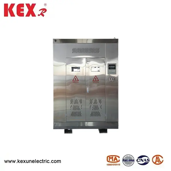 Sistem za krmiljenje temperature za rudarski transformator KSG je sestavljen iz temperaturnega regulatorja in temperaturnega merilnega elementa, nameščenega na vrhu nizkonapetostne navijanja, ki je najbolj vroča točka izdelka. 1T realizira nadzor temperature transformatorja in med delovanjem transformatorja prikazuje temperaturo vroče točke navitij A, B in C. Če je temperatura navitja transformatorja previsoka zaradi operacije preobremenitve ali napake, bo regulator temperature izdal alarm in potovanje, sistem za nadzor temperature pa bo imel pasivne stike za alarm in potovanje. Pri uporabi hlajenja prisilnega zraka regulator temperature določi vhod ali preklop ventilatorja za certificiranje sistema hladilnega okolja na podlagi temperature navitja. Komunikacijski vmesnik RS485 je mogoče tudi poljubno namestiti za daljinsko upravljanje. Ohišje izdelka ima zaščitno raven P21 ali višje